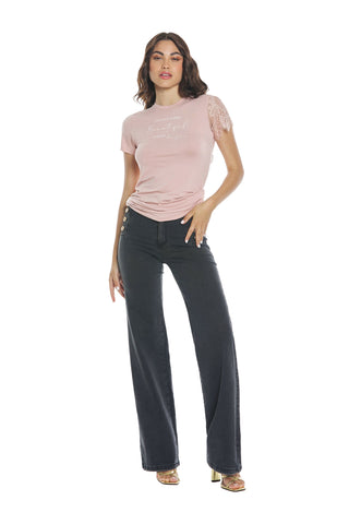 T-shirt BOOTES corta mezza manica aletta con pizzo più stampa