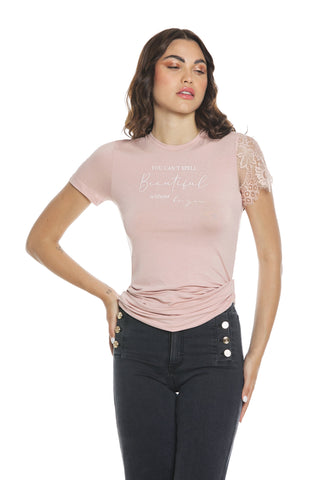 T-shirt ERCOLES mezza manica con pizzo con stampa più pieghe fianco