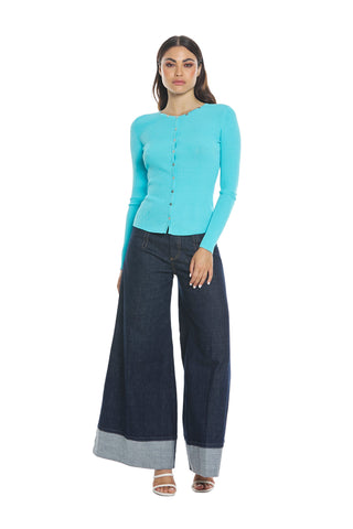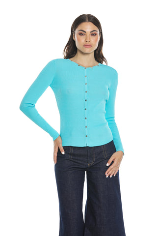 Cardigan BLENDA manica lunga con bottoncini bordi costina