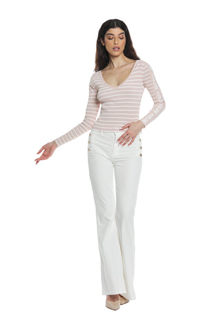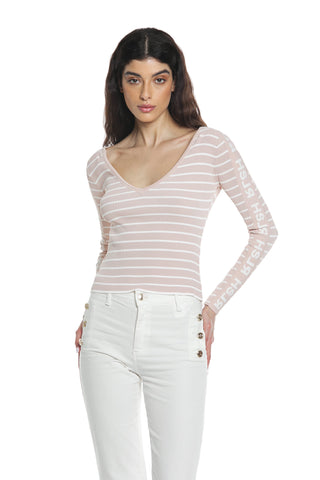 Maglia AMBRA manica lunga con logo scollo v righe costina