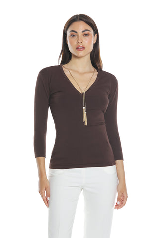 Maglia MANTES m.3/4 scollo v con collana più pendagli