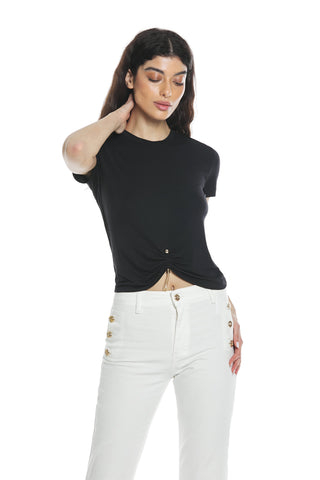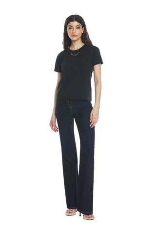 T-shirt HYDRUS mezza manica scollo barca con laccio strass
