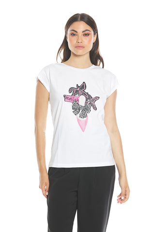 T-shirt AURIGAMI corta mezza manica con stampa più applicazione cristalli