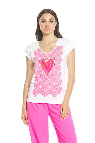 T-shirt ANTILIA mezza manica scollo madonna con stampa cuori