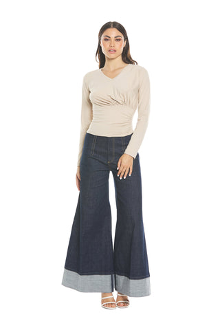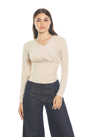 T-shirt WRAPP manica lunga scollo v con arricci più logo