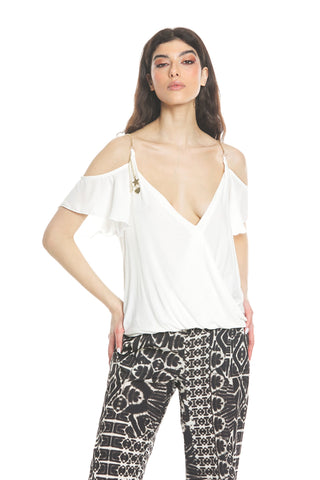 Top SAPODILLA mezza manica georgette doppio scollo incrocio più spallina catena più ciondoli
