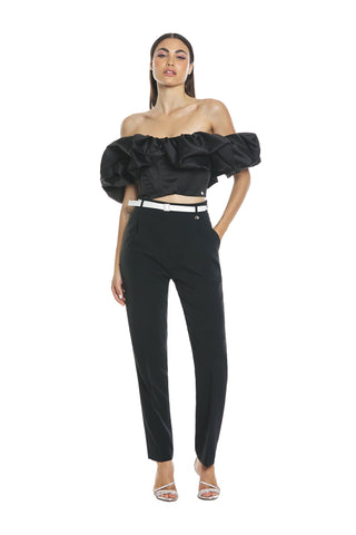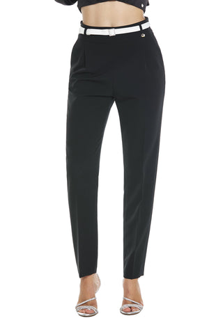 Panta GIUNONE vita alta con pinces più tasca più cintura fibbia strass