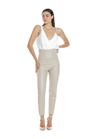 Panta OCCHIOGATTO vita alta con zip retro più arricci ecopelle