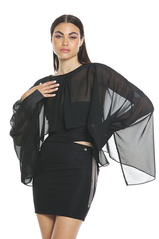 Coprispalle CIAORITE manica lunga volant apert. dietro polsini raso