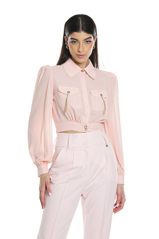Camicia STAUROLITE manica lunga con spallina più arricci più tasca più vele più nappina catene pend.