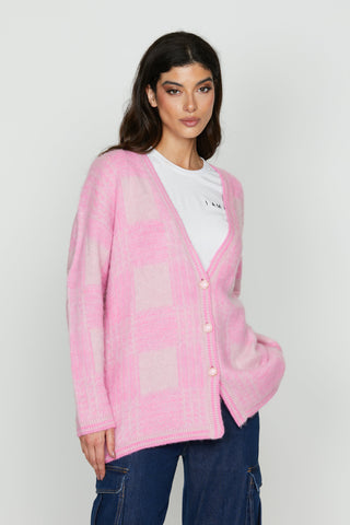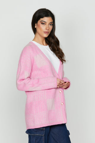 Cardigan OLIVERAS manica lunga con bottoni gioiello più jacquard quadri