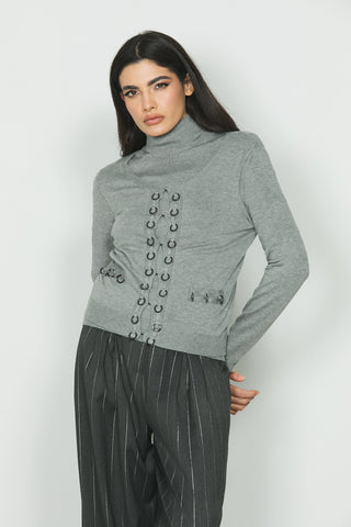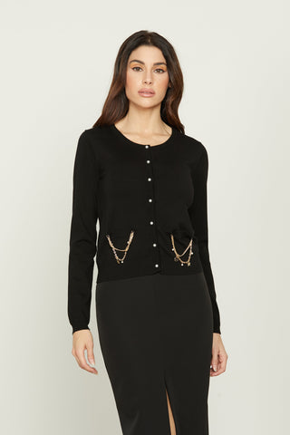 Cardigan ASTERIA manica lunga con patte più catene con pendagli più bottoni perla