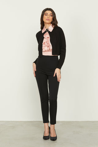 Cardigan ARTEMIDE corto manica lunga con cinturino più fibbia gioiello