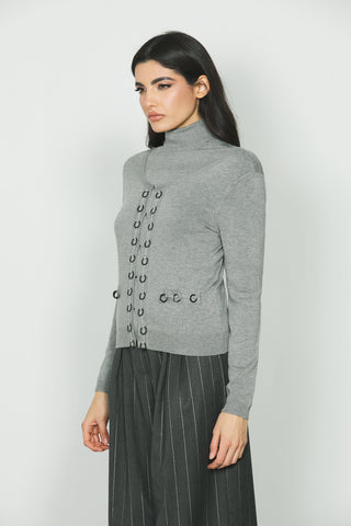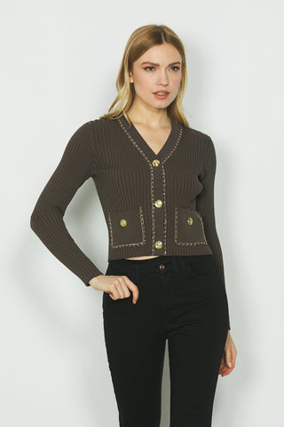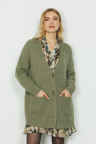 Cardigan ASIA manica lunga con tasche finte più dettaglio anelli