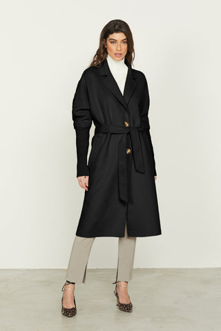 Cappotto RIMMO_BIS lungo manica lunga con collo ampio più cintura