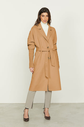 Cappotto TERRY lungo manica lunga con inserti maglia lav.trecce più tasche più cintura