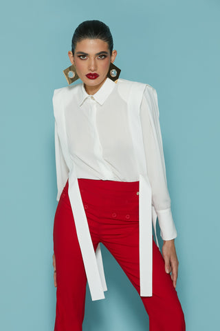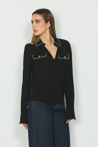 Camicia GISELLY manica lunga con fasce pendenti più bottone gioiello strass
