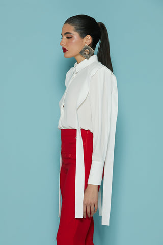 Camicia FIDES_A corta manica lunga con doppio polso più gemelli scollo a incrocio con fusciacca