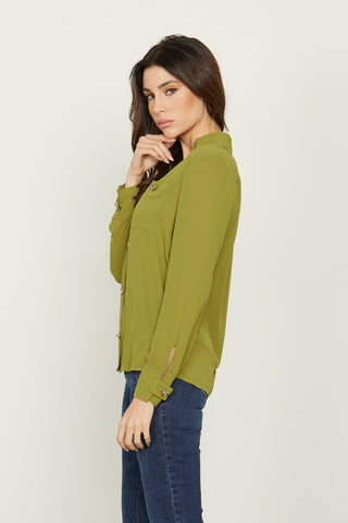 Camicia DENES manica lunga con martingala più tasche più bottoni gold