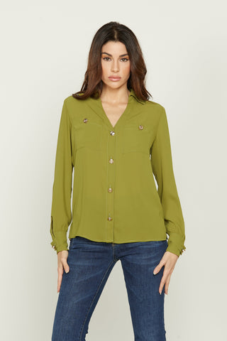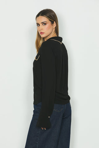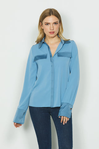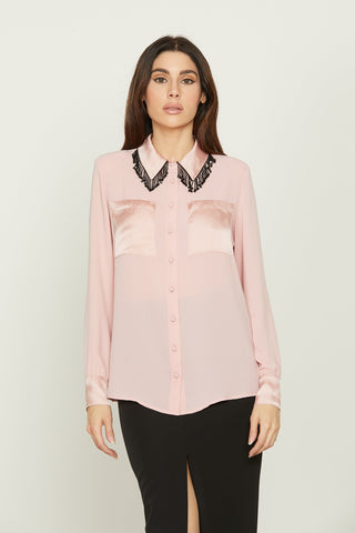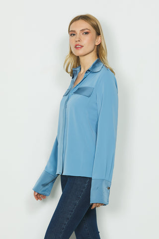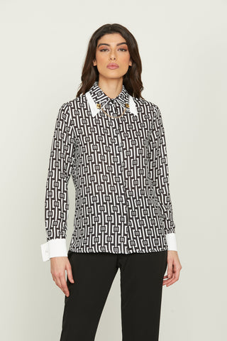 Camicia ILEANA manica lunga con polso ampio più patte più contrasti raso più catena logo