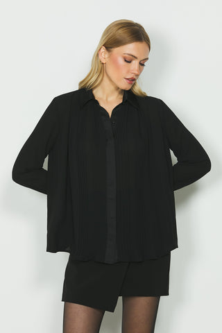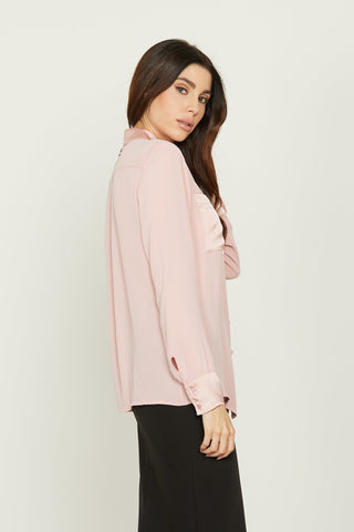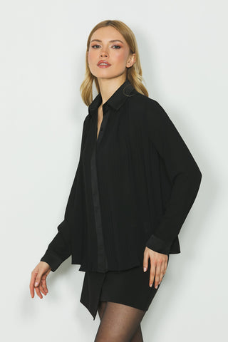 Camicia ELISABETHS manica lunga plisse' con contrasti, in raso