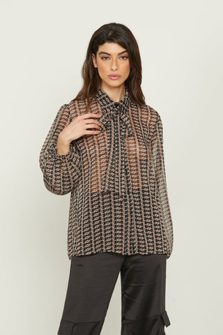 Camicia LABAKI manica lunga con arricci più fusciacca fant. Geometrica più lurex