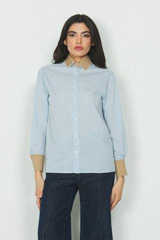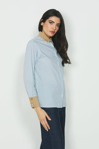 Camicia FOSCA manica lunga con polsi a contrasto più applicazione perle righe