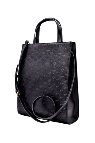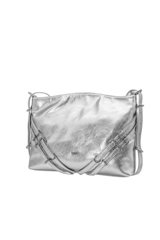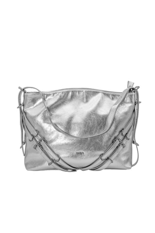 Borsa STACEY_BIG con tracolla più cinturini più fibbie più logo ecopelle laminata