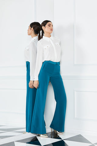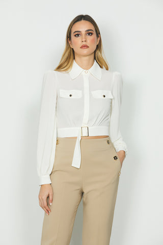 Camicia CESIDIA corta manica lunga con patte più cintura con fibbia