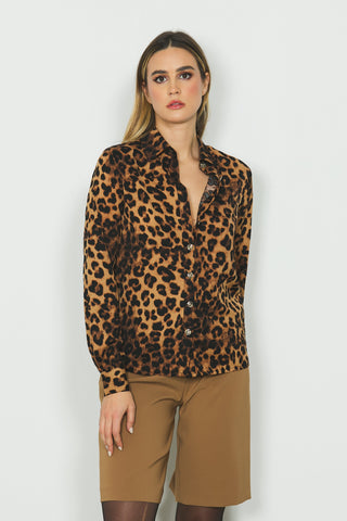 Camicia BERNADETTE manica lunga con bottoni oro fantasia maculata