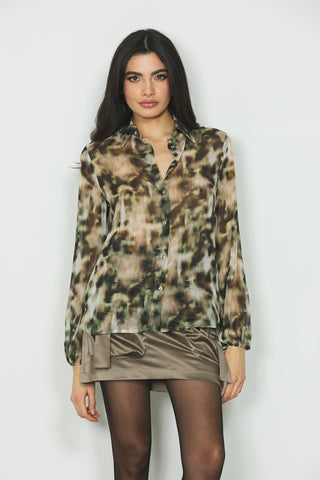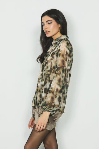 Camicia ALESSIA con arricci fantasia camouflage più lurex