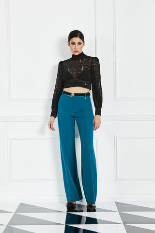 Blusa ADIMA manica lunga collo koreana con bordi a contrasto più fibbia gioiello più laccetti