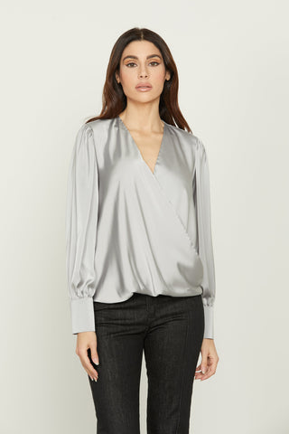 Blusa ASELLUN manica lunga scollo incrocio asimmetrica raso
