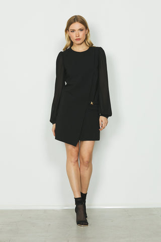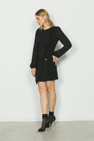 Abito BENIAMINO corto manica lunga georgette con cint. più fibbie con finta asimmetrico