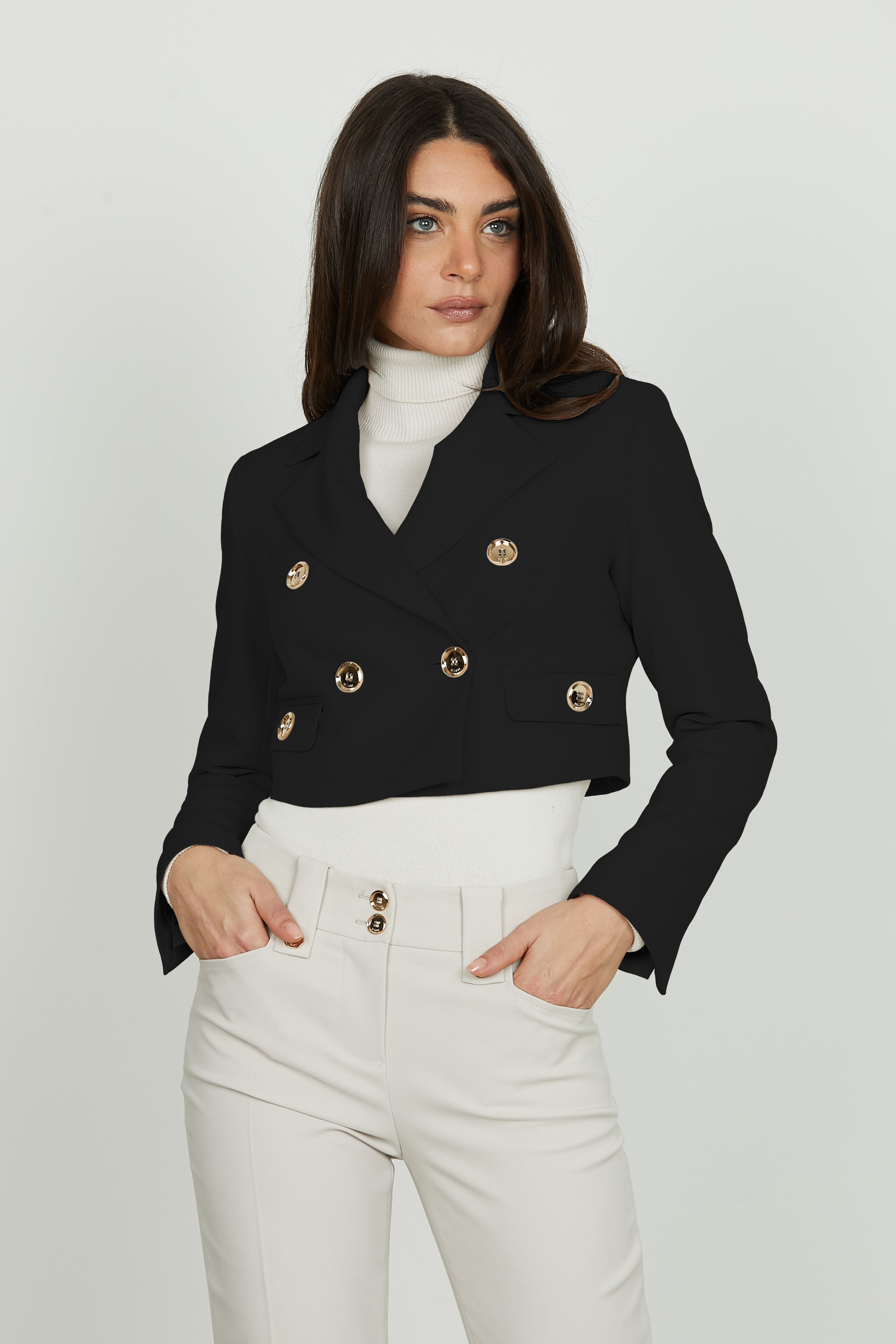 Un capo che unisce classe e carattere. La giacca GAEL, con il suo taglio corto e il design a doppio petto, è pensata per valorizzare la figura con eleganza. Le patte frontali aggiungono un tocco di originalità, mentre la struttura definita dona un’allure sofisticata ma decisa. Perfetta per completare look urbani o più formali, è la scelta ideale per chi ama distinguersi con stile, senza rinunciare alla versatilità.