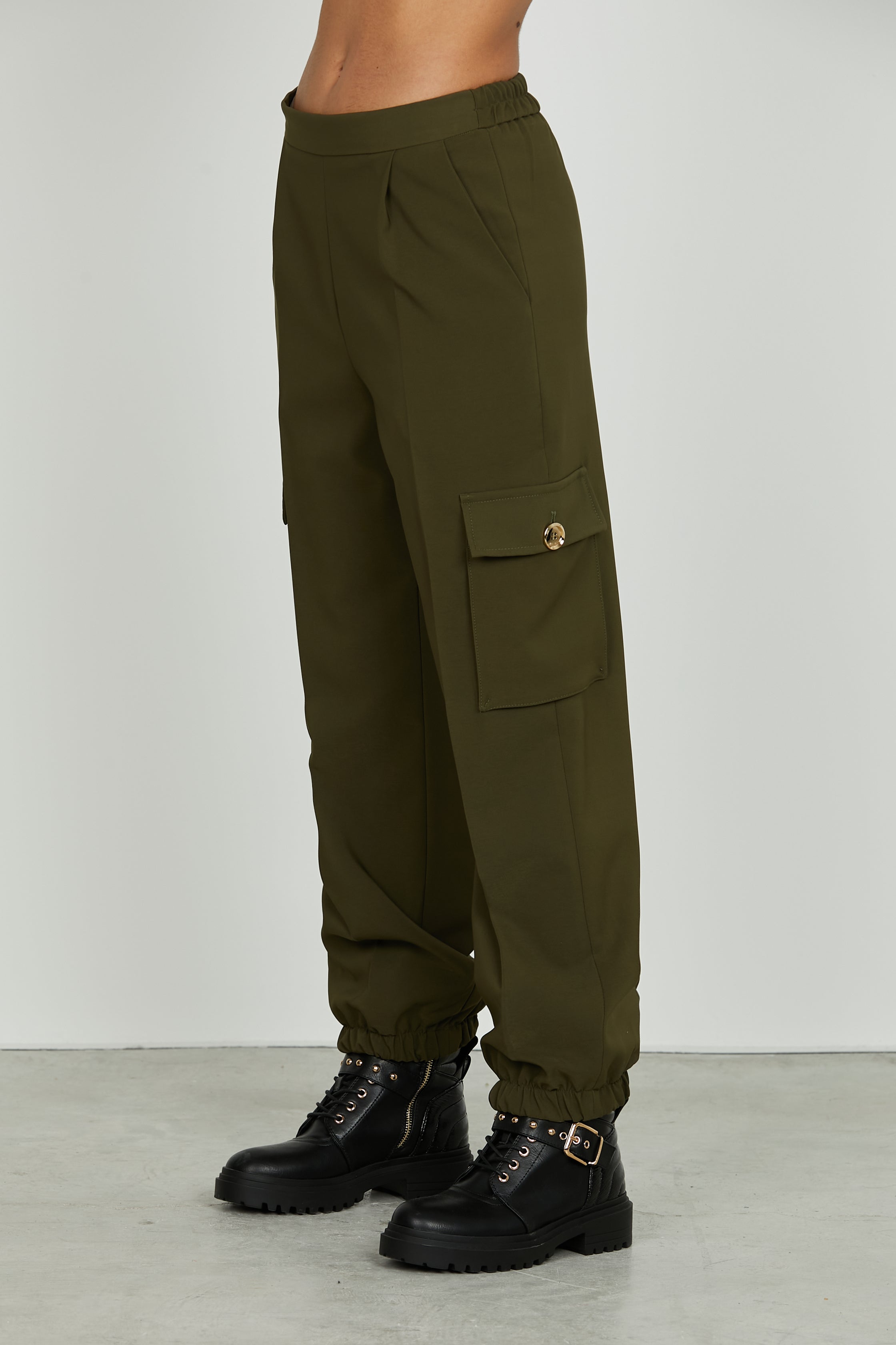 Panta TECLANA vita alta con elastico più tasconi più tasche francesi più pieghe