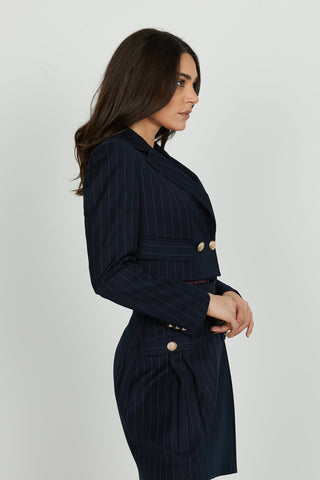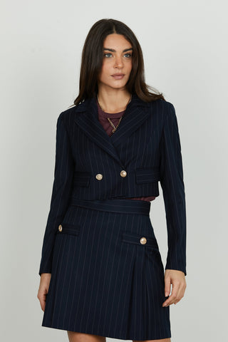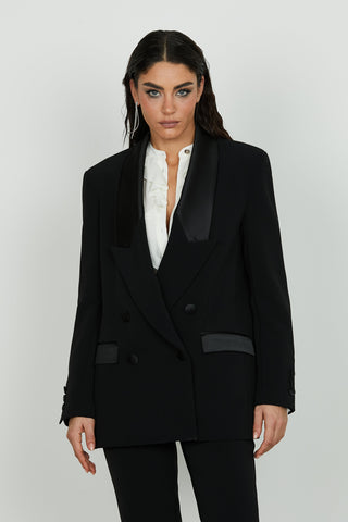 Giacca BELSA_PIE manica lunga doppio petto con patte micro pie de poule più paillettes