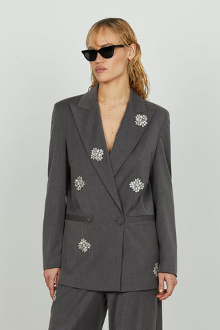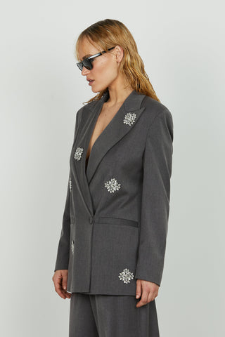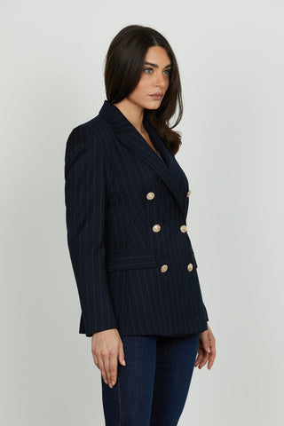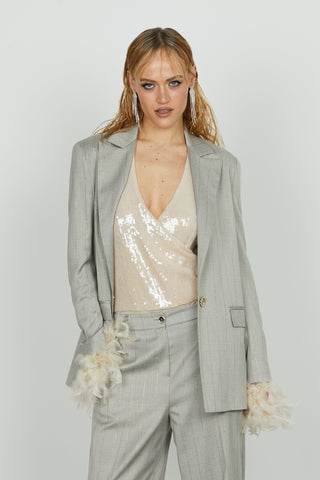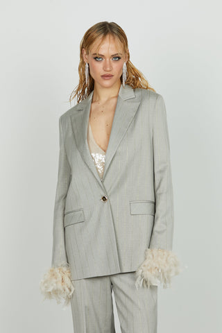 Giacca BREDA manica lunga con piume 1 bottone più patte gessato lurex