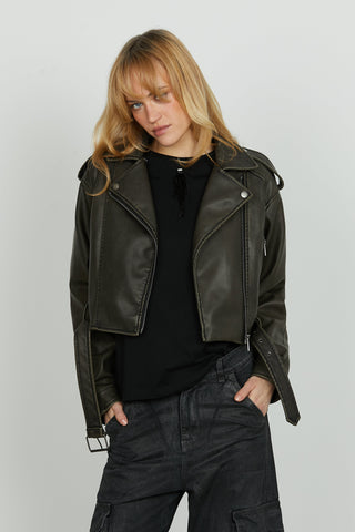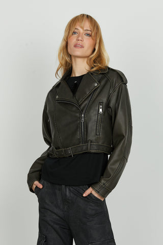 Giubbino ABIGAL manica lunga spalla scesa con zip più tasche più cintura ecopelle