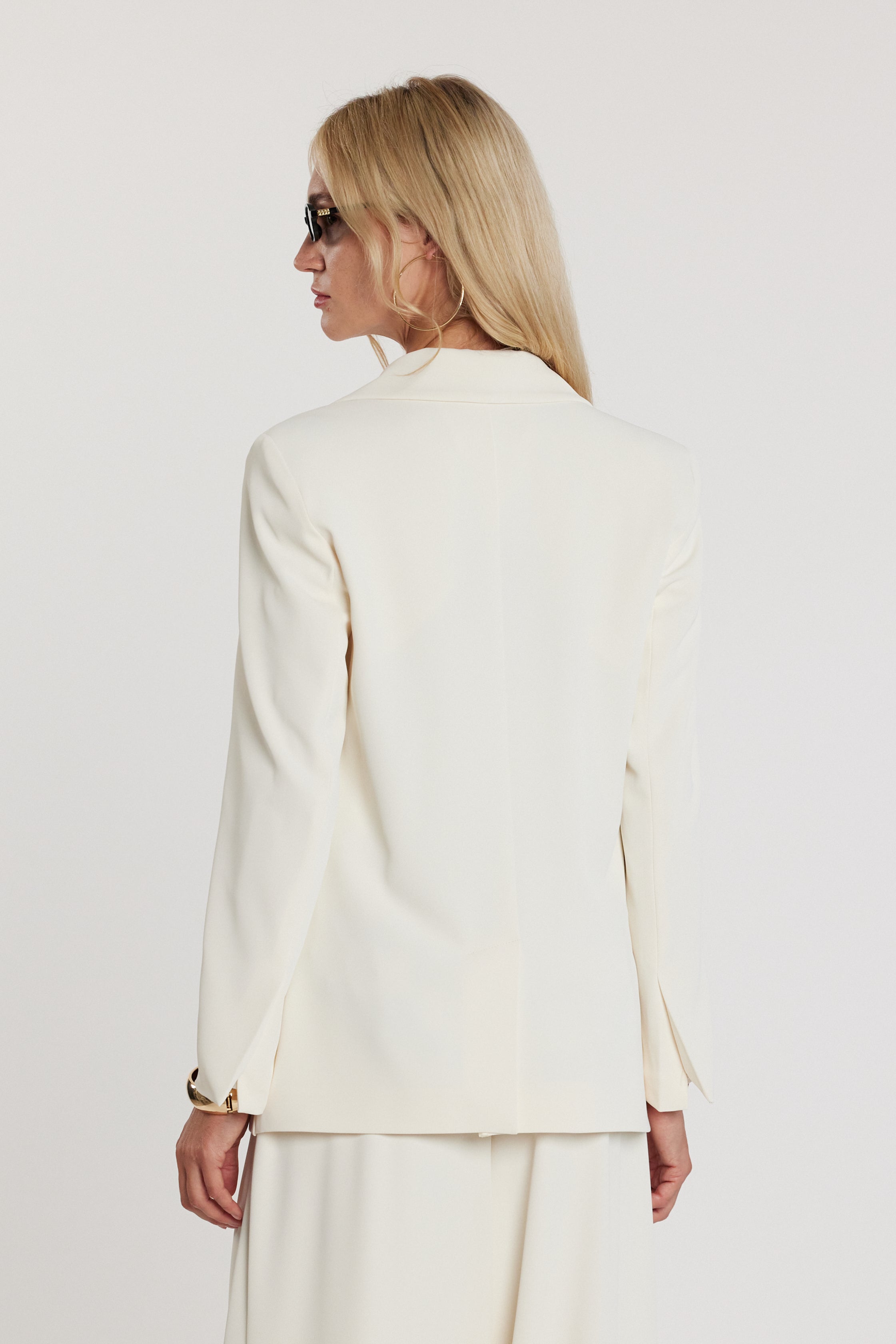 Giacca Lasty lunga maniche lunghe con chiusura a un bottone e patte, un capo sofisticato che slancia la figura grazie alla lunghezza studiata. La linea pulita e il design essenziale la rendono ideale per look eleganti e raffinati, perfetta per completare outfit formali o serali.