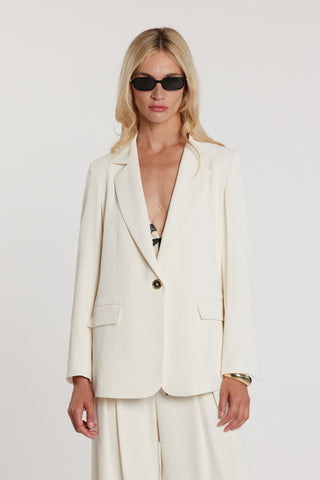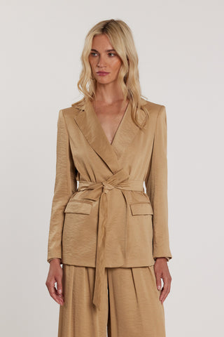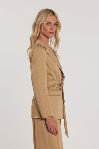 Giacca SATYNE maniche lunghe con un bottone patte più revers e inserti in raso più spilla