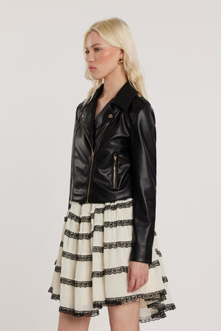 Giubbino TAYLOR maniche lunghe chiodo con zip più cintura più balza sul fondo ecopelle