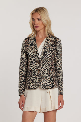 Giacca PIERRE maniche lunghe due bottoni sfoderata con patte fantasia animalier