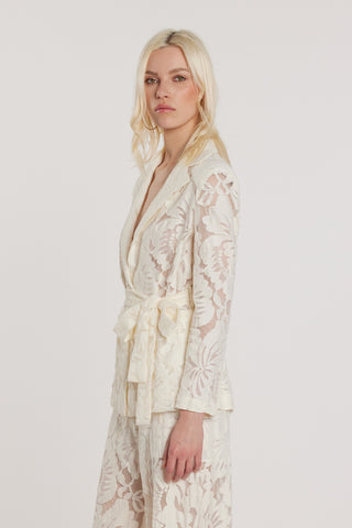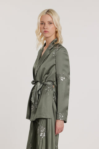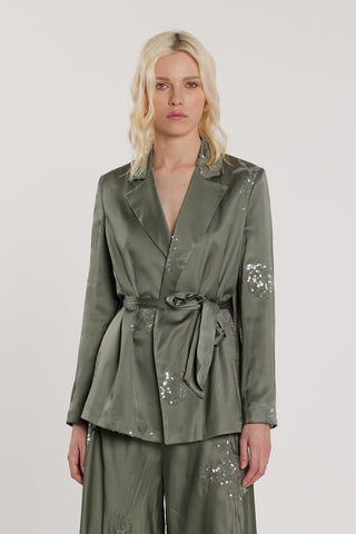 Giacca KIMA maniche lunghe con cintura effetto vestaglia raso più ricamo fiori strass