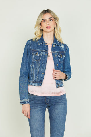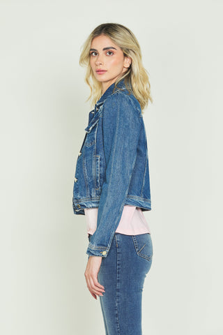 Giubbino IKUKO manica lunga con arricci più tasche più rotture in denim