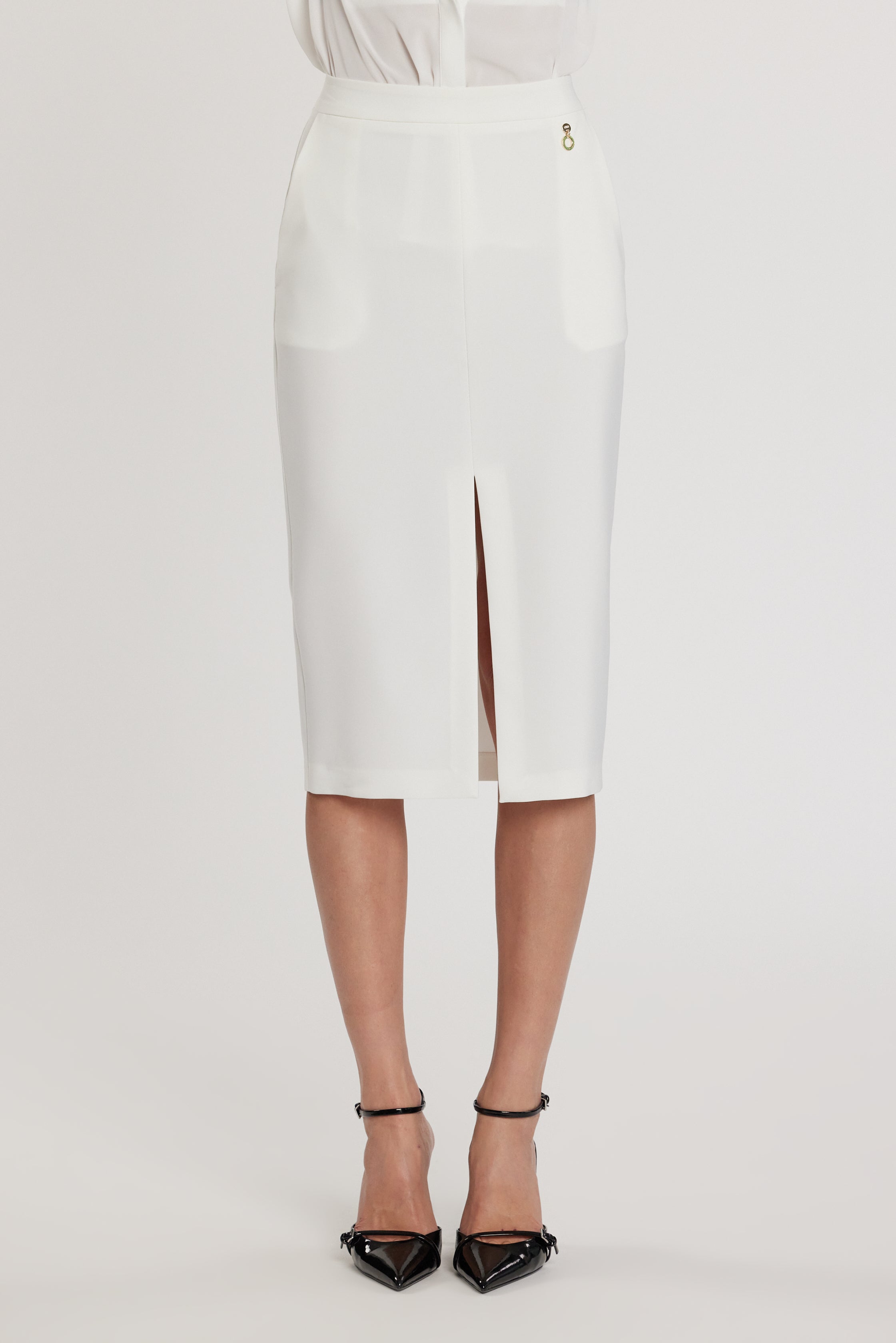 Longuette Vadim con tasche francesi e spacco centrale, un modello elegante e raffinato. Lo spacco centrale aggiunge movimento e sensualità discreta, mentre le tasche valorizzano la linea con charme couture.