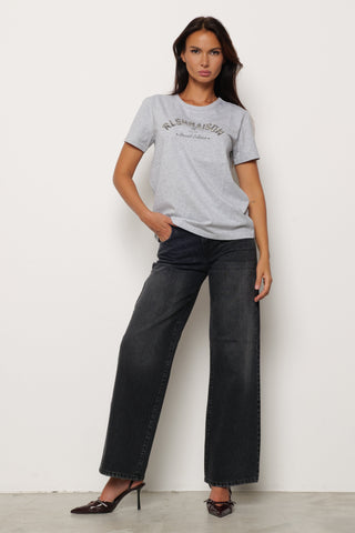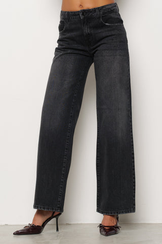 Panta GISELLE_31 v.media 5ts con perle più pietre strass loose fit denim black