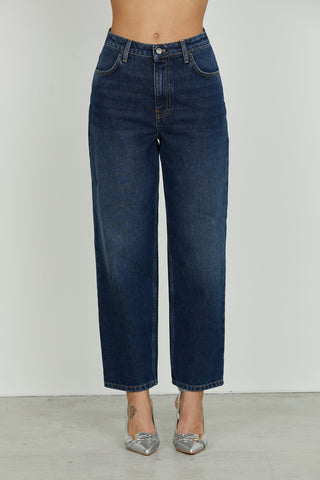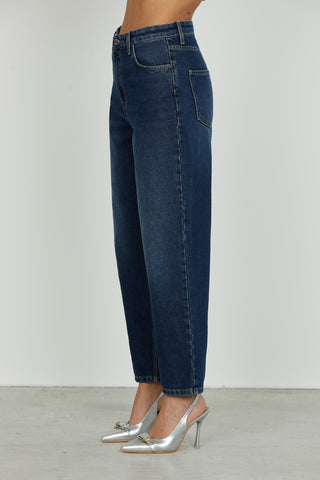 Panta CARLA_23 vita media 4 tasche con pietre strass baggy fit blue denim