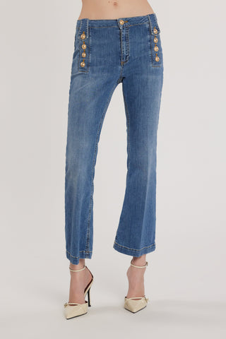 Pantalone PALENCIA_CROP vita alta con passanti a punta più dettagli bottoni denim