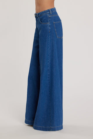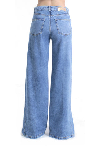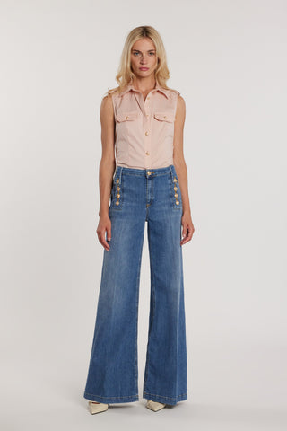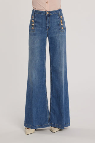 Pantalone PALENCIA_B vita alta palazzo con passanti a punta più dettagli bottoni denim